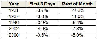 There have only been 5 other occurrences where the S&P 500 has lost more than 3 percent during the first three trading sessions of September and according to analyst Jason Goepfert that has spelled trouble for the benchmark index going forward.