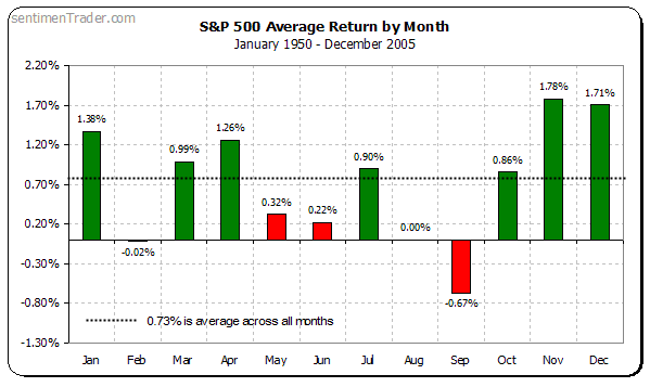As you can see the S&P 500 does not fare well after a weak beginning to September. And even if the month starts out on a good foot, September remains the worst performing month of the year for the S&P 500 with an average decline of 0.67%.